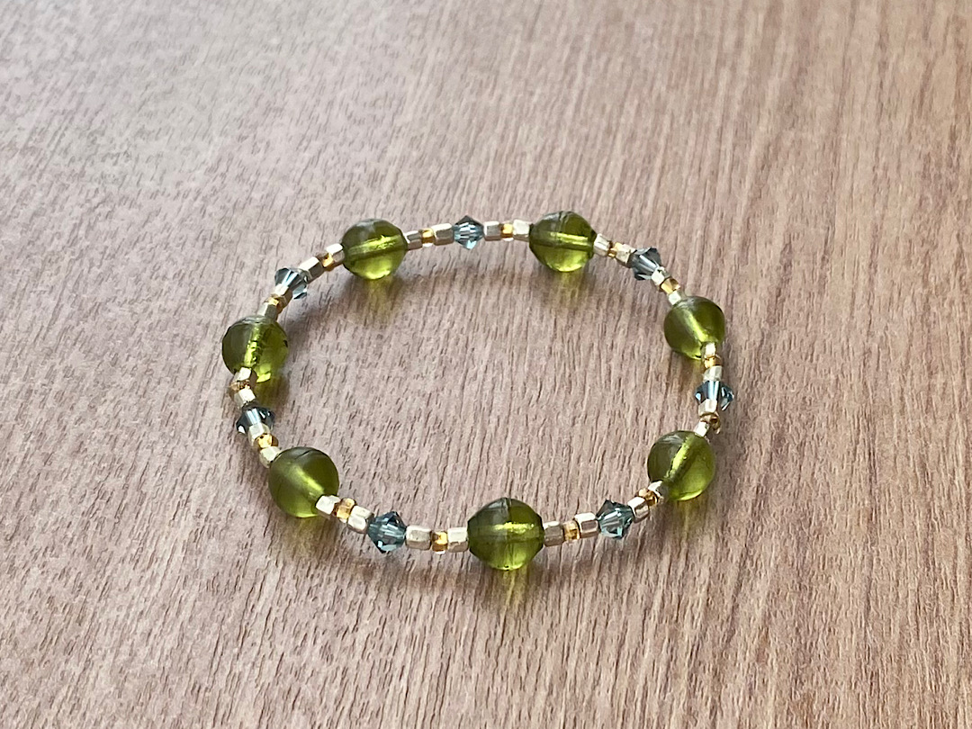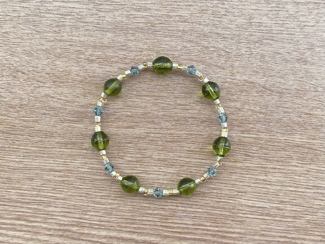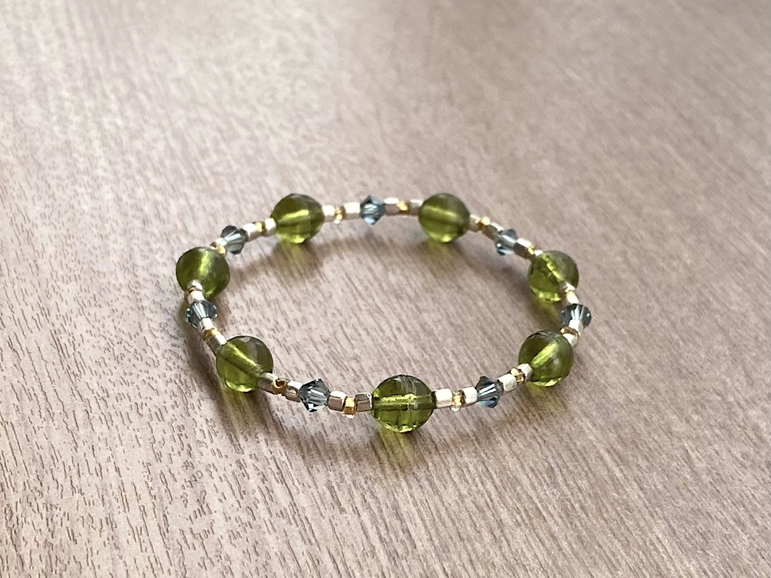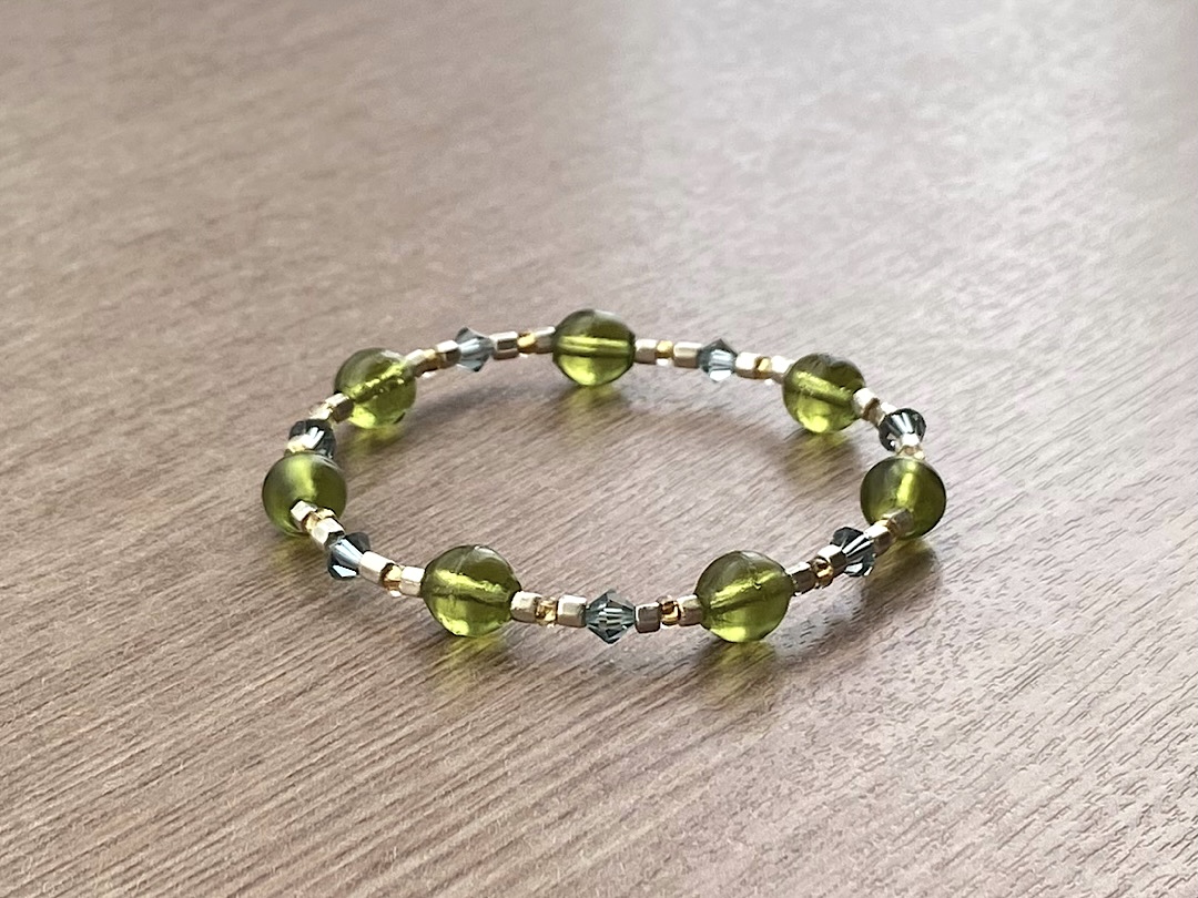 ブレスレットは透明ゴムを使用しており、内周15cmになっています。