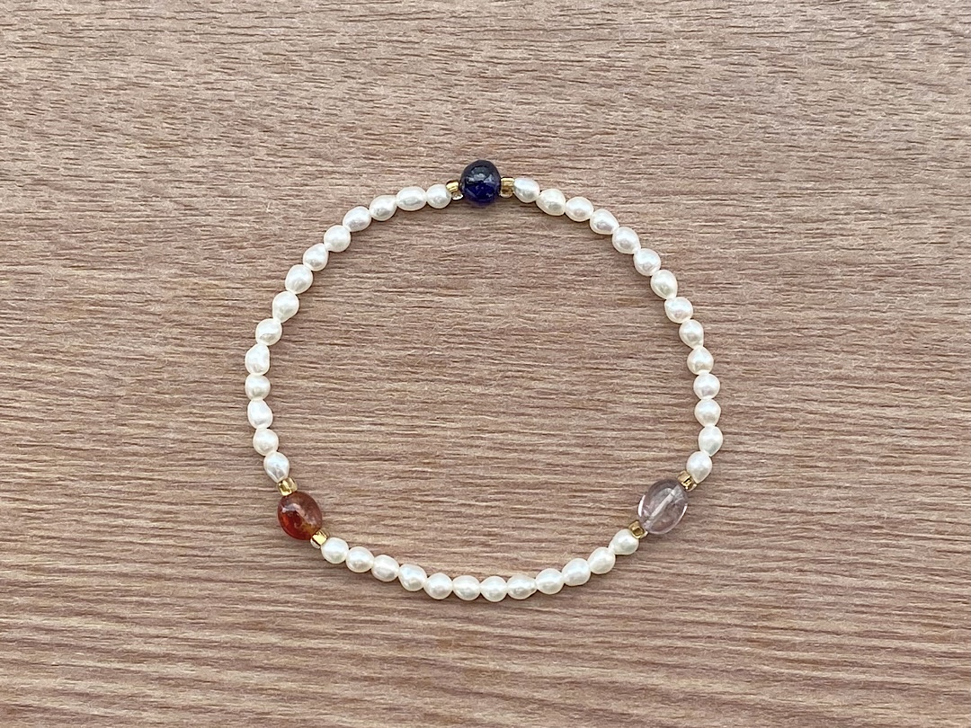 ブレスレットは透明ゴムを使用しており、内周15cmになっています。
