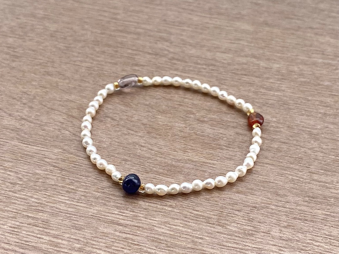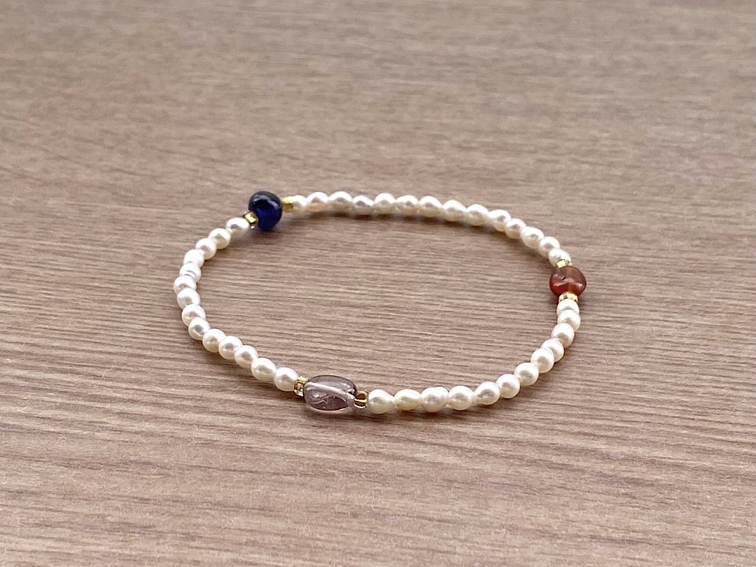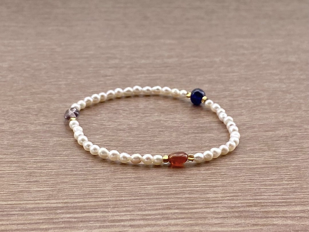 ブルーサファイアと、色の表情豊かなトルマリンをあしらったブレスレット。