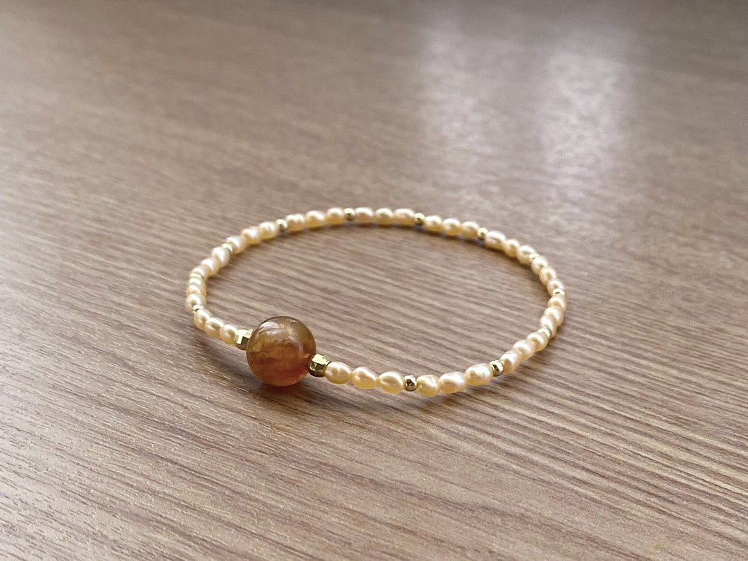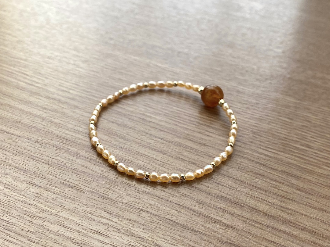 柔らかく女性らしい雰囲気を演出し、落ち着きと上品さを併せ持つ、手元を彩るブレスレットです。